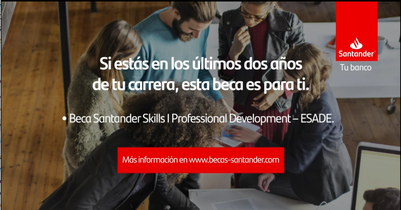 Banco Santander y ESADE ofrecen 400 becas para un curso 100% online, dirigido a estudiantes de pregrado y jóvenes profesionales con hasta 3 años de experiencia profesional con perfiles STEM (Ciencias, Tecnología, Ingeniería y Matemáticas).