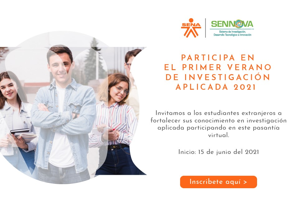SENA, establecimiento público del orden nacional y con autonomía administrativa, adscrito al Ministerio del Trabajo de Colombia, invita a todos los estudiantes internacionales a participar en el Primer Verano de Investigación Aplicada Virtual.