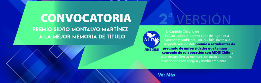 El Capítulo Chileno de la Asociación Interamericana de Ingeniería Sanitaria y Ambiental (AIDIS Chile) invitan a estudiantes que se encuentran elaborando o hayan elaborado recientemente tesis de pregrado en temas relacionados con la Ingeniería sanitaria y ambiental a participar del premio “SILVIO MONTALVO MARTÍNEZ”. Los interesados deberán efectuar la postulación directamente en la página web de AIDIS (www.aidis.cl), y deberán adjuntar una copia digital de la memoria que postula al premio.