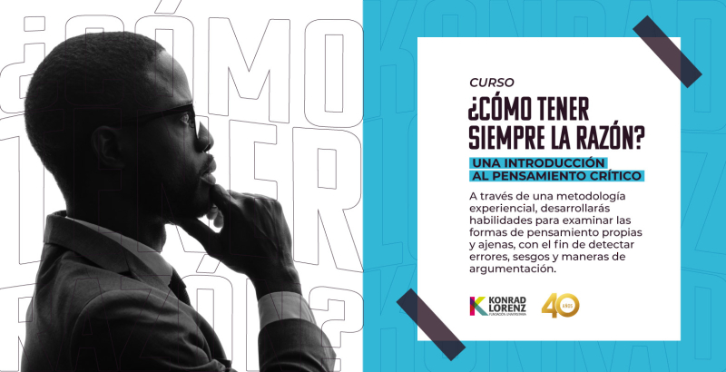 La Fundación Universitaria Konrad Lorenz extiende su invitación a los estudiantes de la USM para participar de la segunda versión del Curso Internacional. ¿Cómo tener siempre la razón? Una Introducción al Pensamiento Crítico, dirigido a estudiantes internacionales y konradistas que, a través de una metodología experiencial, desarrollarán habilidades para examinar las formas de pensamiento propias y ajenas con el fin de detectar errores, sesgos y maneras de argumentación.