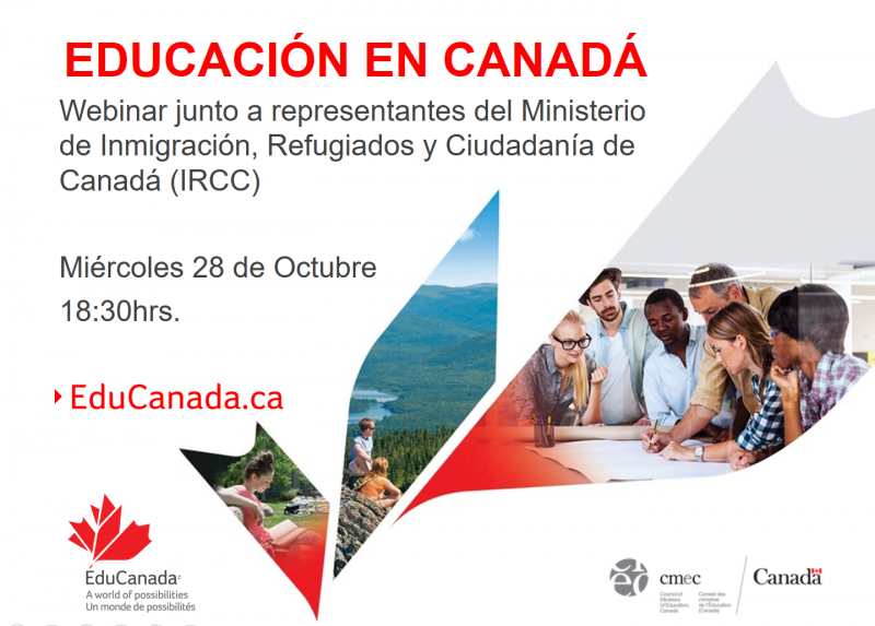Este miércoles 28 de Octubre, a las 18:30hrs, se realizará un webinar junto a representantes del Ministerio de Inmigración, Refugiados y Ciudadanía de Canadá, donde las y los estudiantes podrán hacer sus preguntas sobre requisitos de ingreso, permisos de estudio, Programa Experiencia Internacional Canadá (Work and Holiday) y restricciones de viaje vigentes.