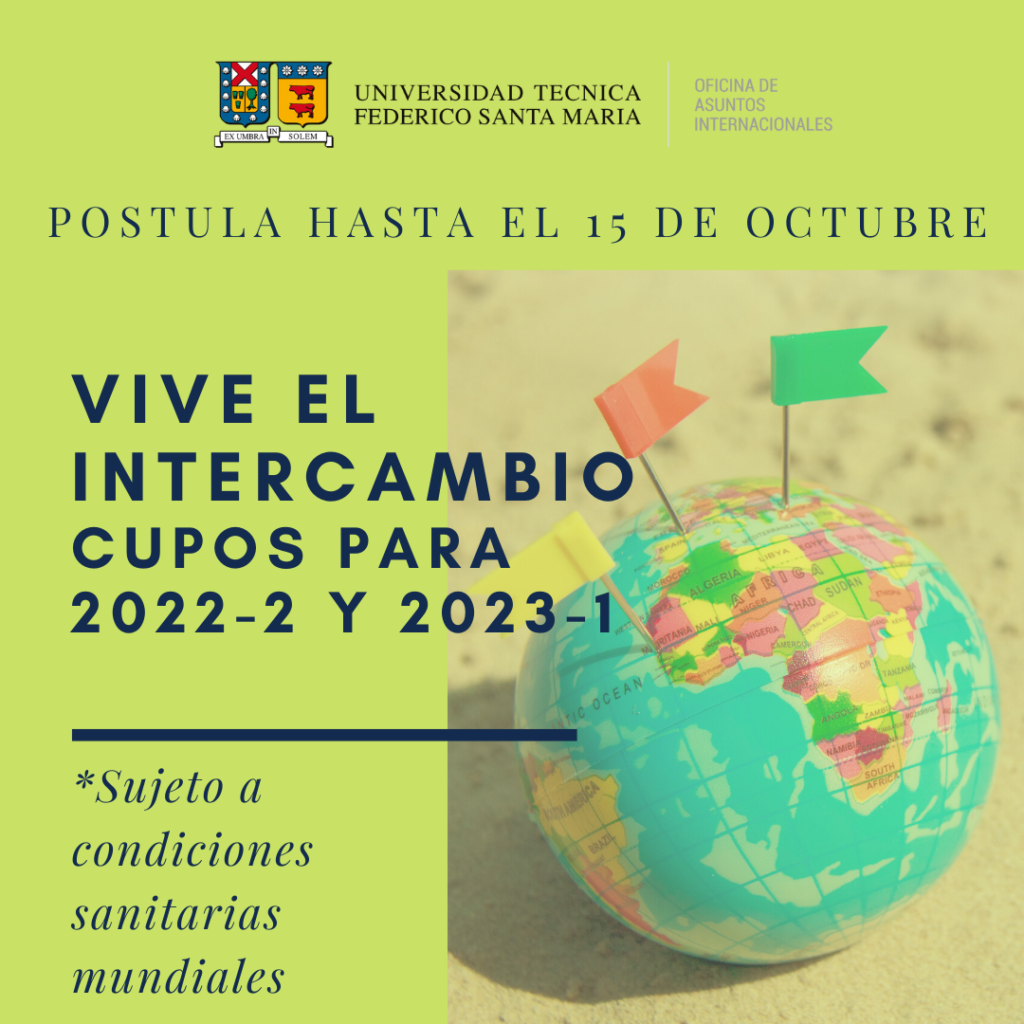 La Oficina de Asuntos Internacionales (OAI) abre las postulaciones al programa de intercambio internacional para los semestres 2022-2 y/o 2023-1, sujeto a las condiciones sanitarias mundiales.