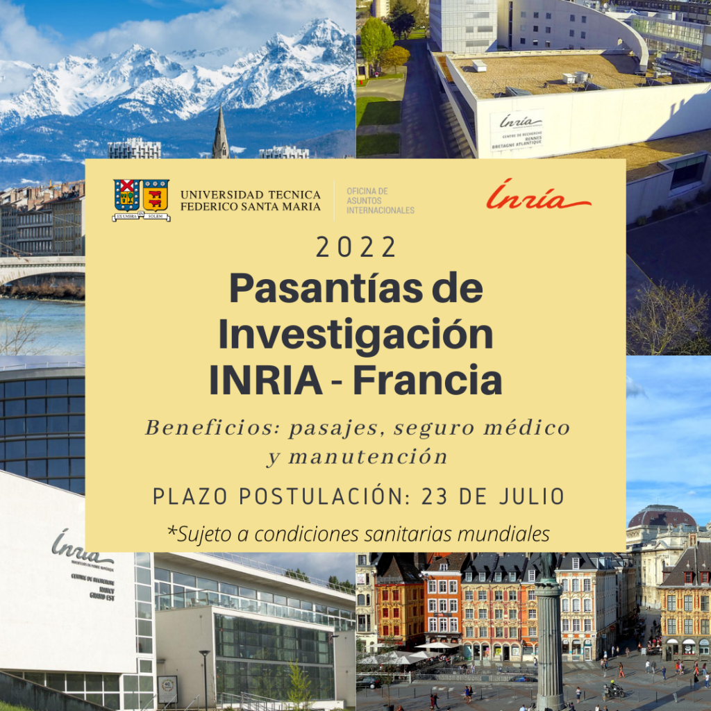 Desde el 14 de junio y hasta el 23 de julio se encuentran abiertas las postulaciones para realizar pasantías de investigación de 3 meses en alguno de los 8 centros del Institut National de Recherche en Informatique et en Automatique (INRIA), en Francia.